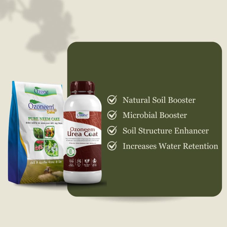 Ozoneem Urea Coat is a neem oil-based coating for urea that slows nitrogen release while actively fighting root diseases. It aligns with Government of India’s mandate to use neem-coated urea for sustainable and efficient farming.